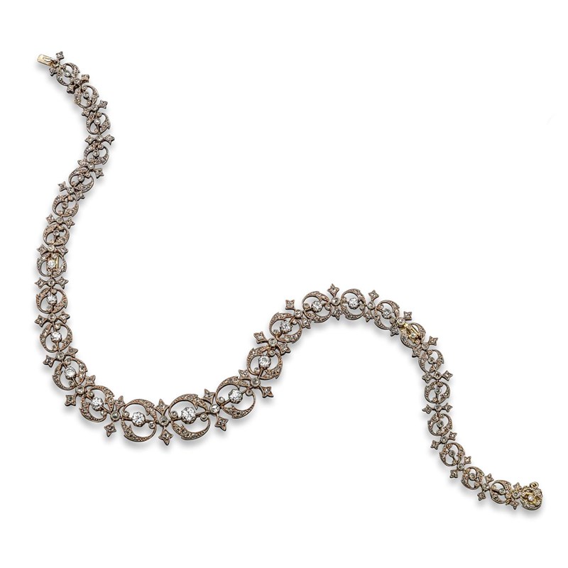 A late Victorian diamond set necklace converting to a tiara and bracelets