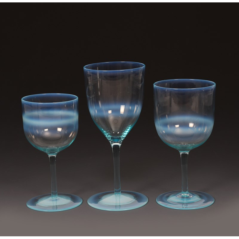 Three James Powell & Sons Whitefriars opal glass wine glasses probably designed by Harry Powell