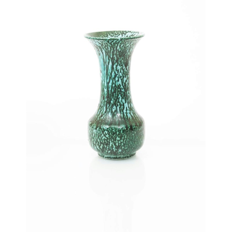A Ruskin Pottery high-fired stoneware vase by William Howson Taylor, dated 1907, shouldered low body with waisted cylindrical neck, covered in a speckled and running green flambe glaze impressed Ruskin West Smethwick mark, dated 1907 26.5cm. high