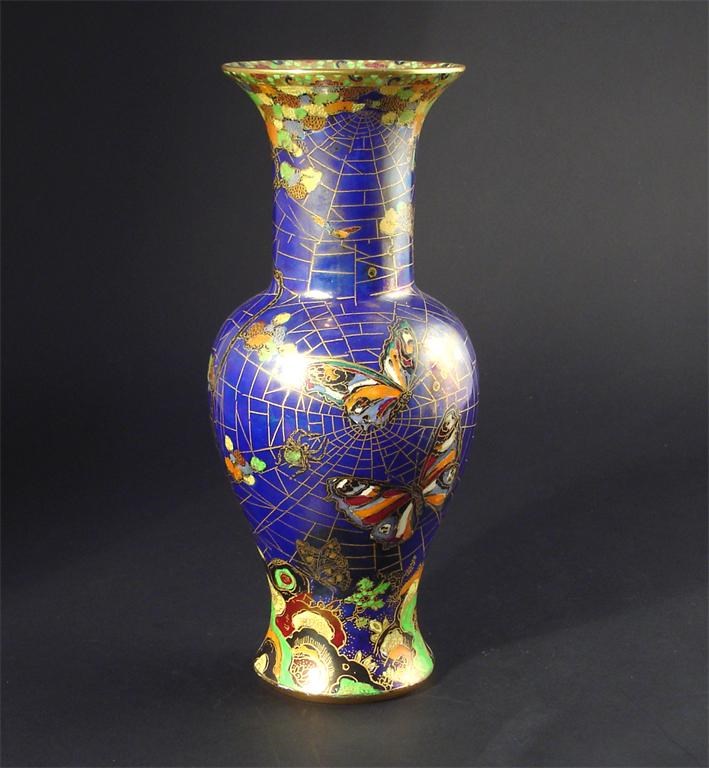 'Flies' A Carlton ware vase , designed by Horace Wain, printed and painted in colours and gilt on a blue lustre ground printed and painted marks 28cm. high