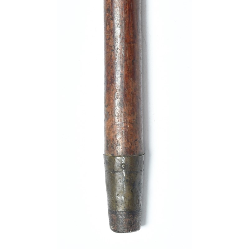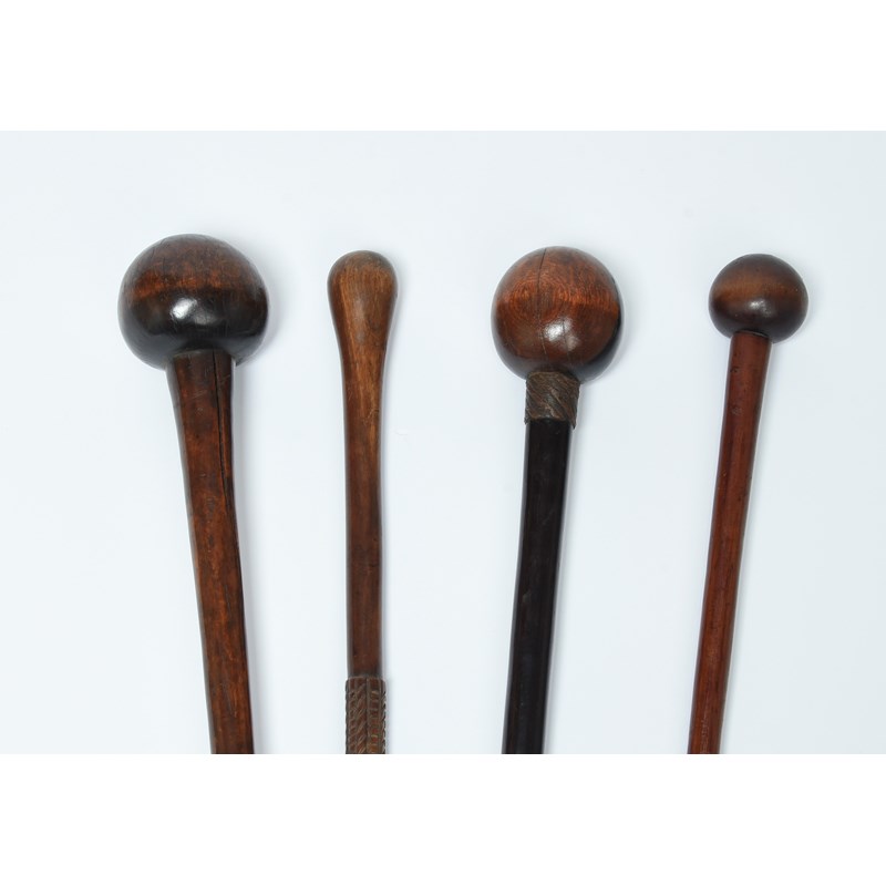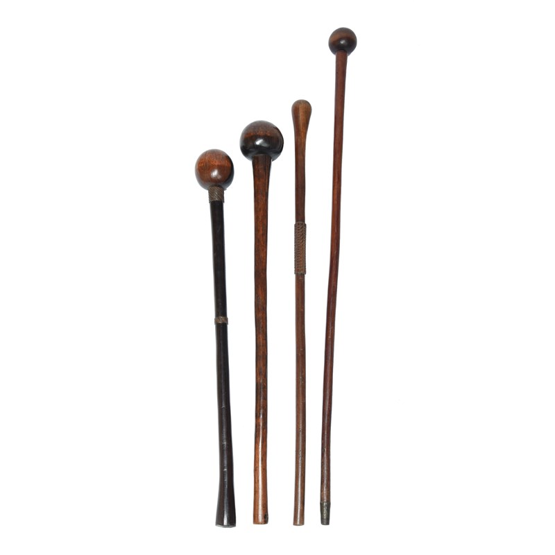 a Zulu staff, with a raised carved band on the shaft, 77.7cm long and a Zulu cane, with a brass tip, 92cm long. (4)