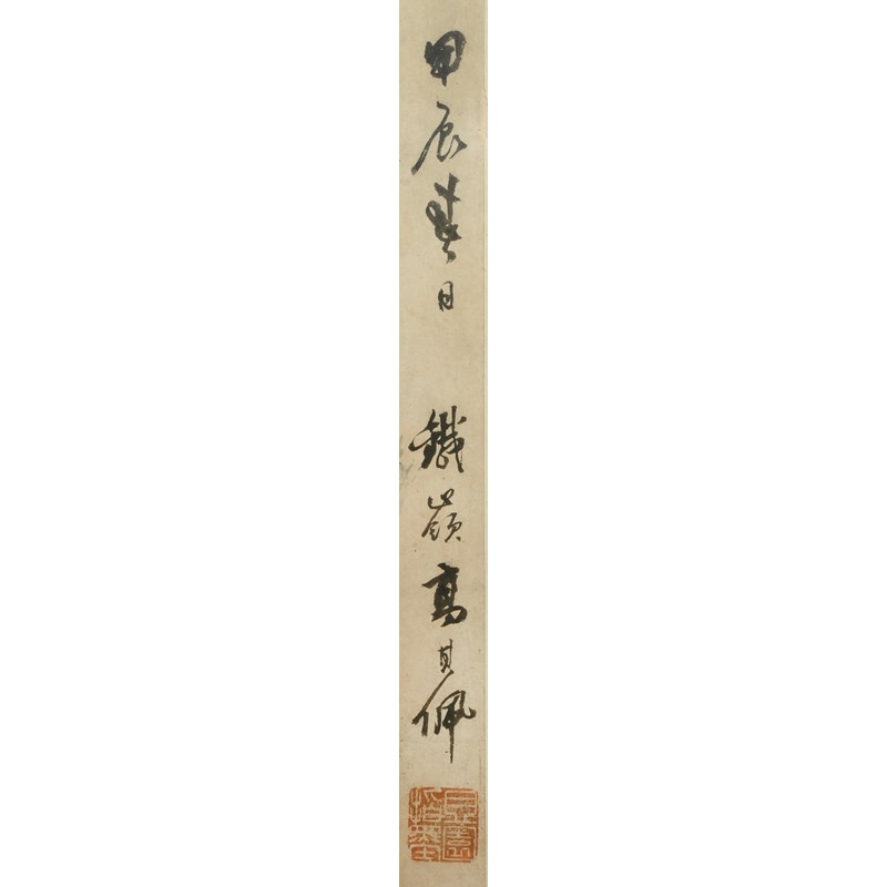 A Chinese painting, ink and colour on paper, inscribed and dated the jiachen year (1724), signed Gao Qipei, with one artist's seal, framed and glazed, 97cm x 29.5cm.