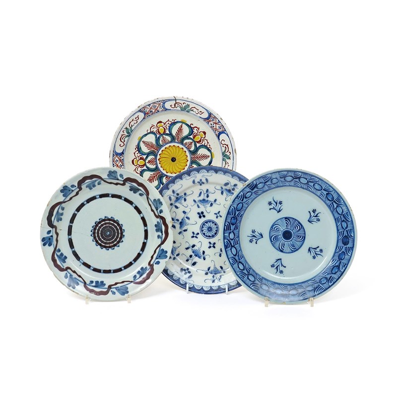 Four Delft and delftware plates 18th century