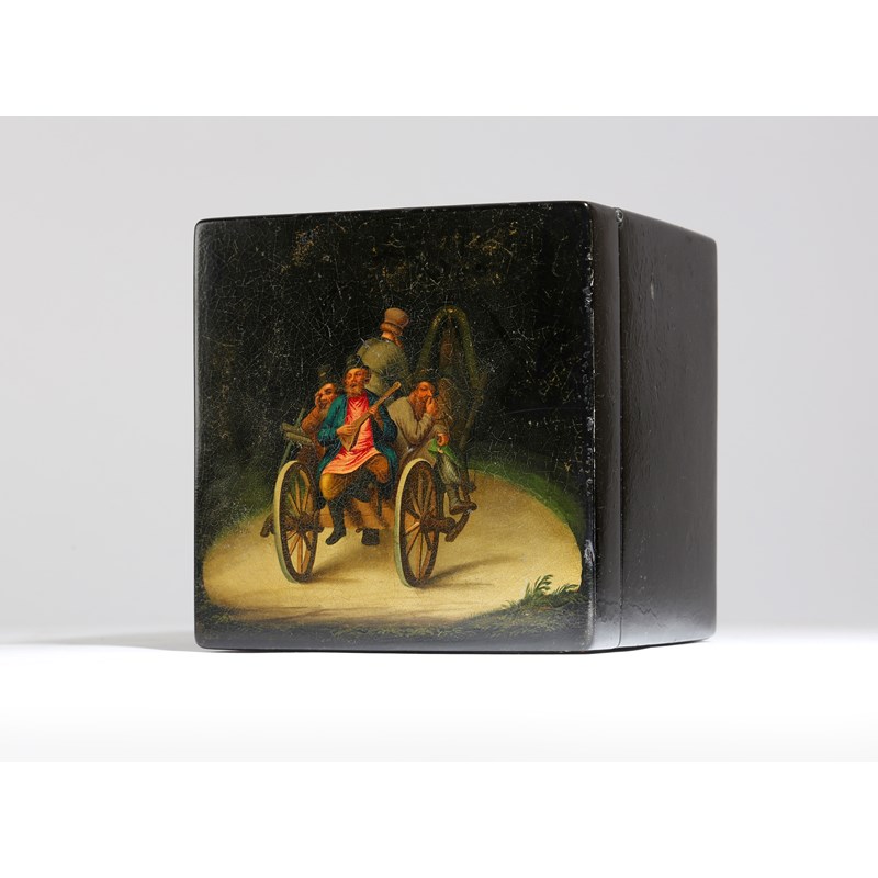 A late 19th century Russian black lacquer and papier-mache box by Lukutin