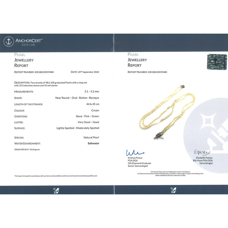 Accompanied by AnchorCert report no. 300188/20059480 dated 20th September 2022 stating the pearls are natural saltwater