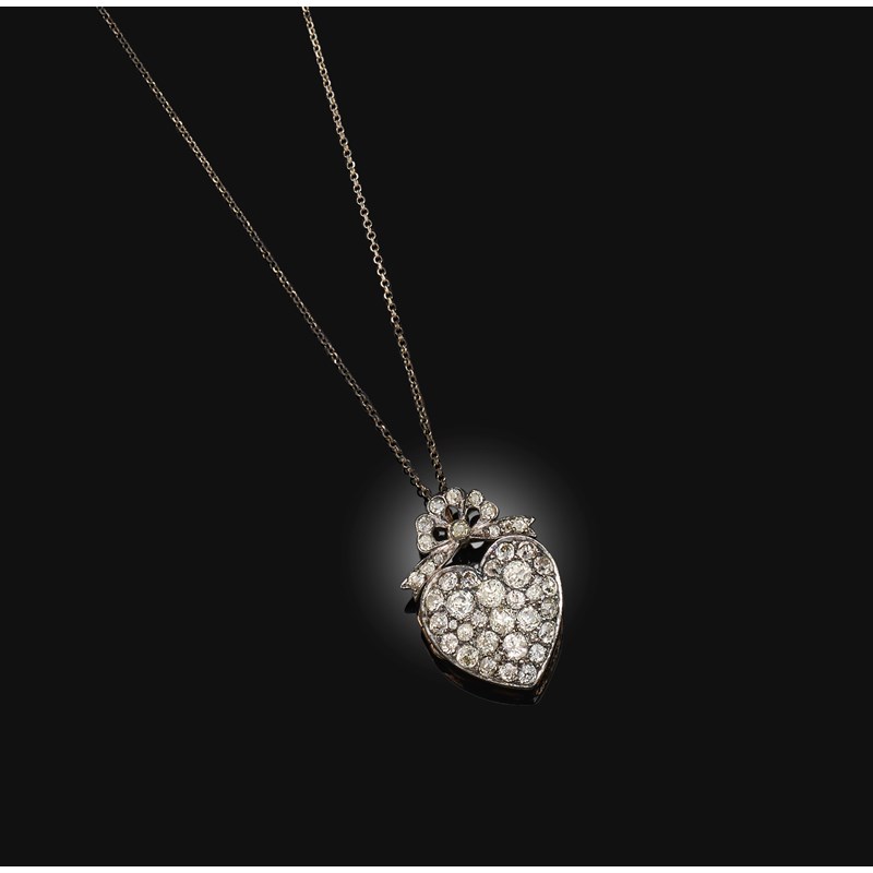 A diamond locket pendant, early 20th century, designed as a heart surmounted by a bow, set with