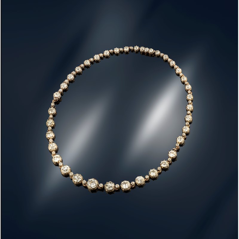 A late 19th century diamond riviere necklace, alternately-set with undulating old circular-cut
