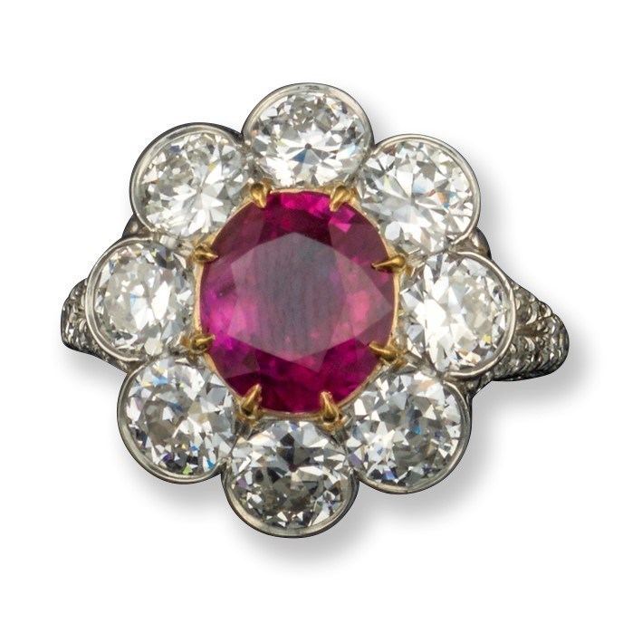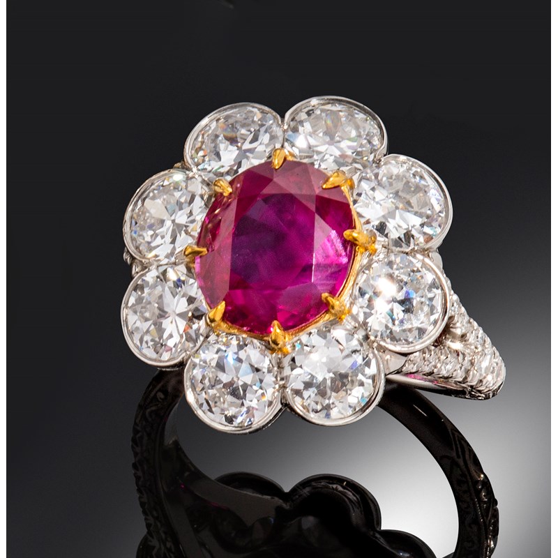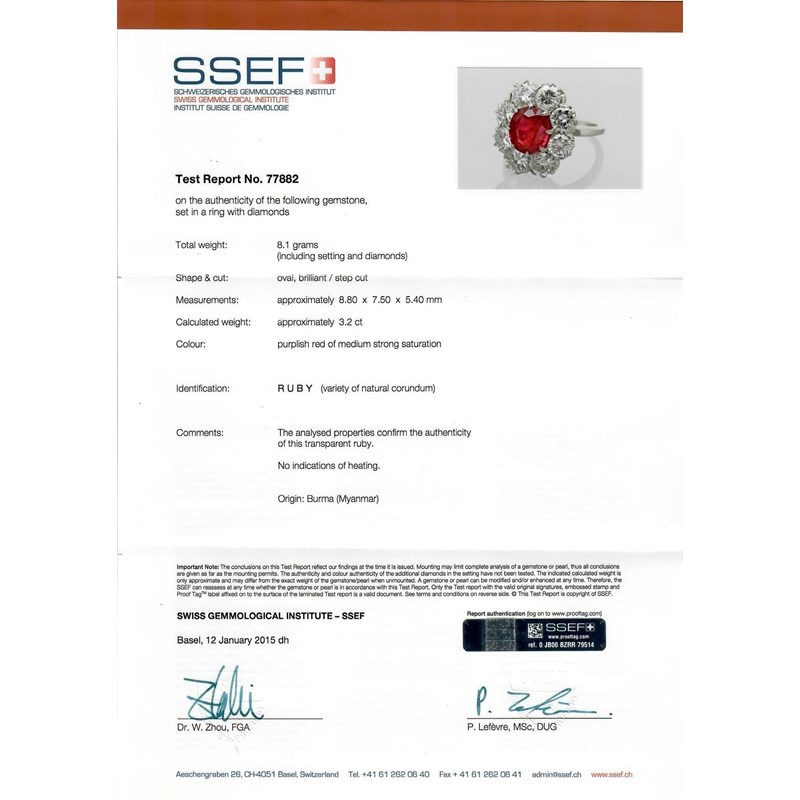 Accompanied by report number 77882 dated 12 January 2015 from SSEF stating that the oval-shaped ruby weighs approximately 3.20cts and is a natural ruby with no indications of heat treatment. Origin: Burma (Myanmar). (The ruby has been reset since certification).