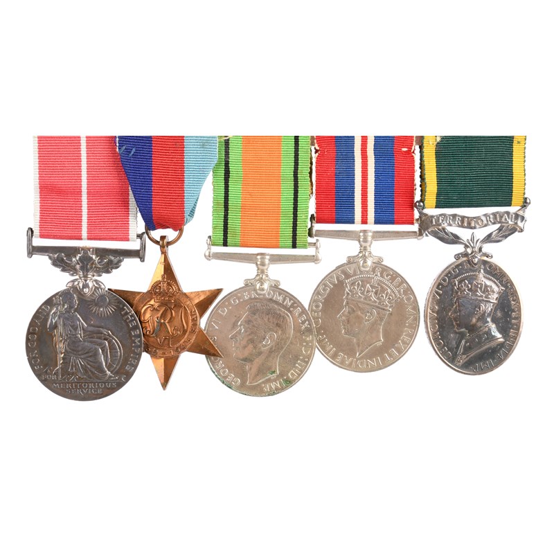 The British Empire Medal group to Corporal Arthur John Rodney Watson B.E.M., Royal Army Service Corps, comprising: British Empire Medal, military division, George VI, GRI cypher (1440840 CPL. ARTHUR J.R. WATSON. RASC.); 1939-45 Star, Defence Medal, War Medal 1939-45, Efficiency Medal (Territorial), George VI (T. 1440840. CPL. A.J.R. WATSON. B.E.M. .R.A.S.C.); good very fine or better; together with a copy of the order of service for the Service of Dedication of the Most Excellent Order of the British Empire, St Paul's Cathedral, 17th May 1988, which the recipient attended; a military handbook and a first aid manual.