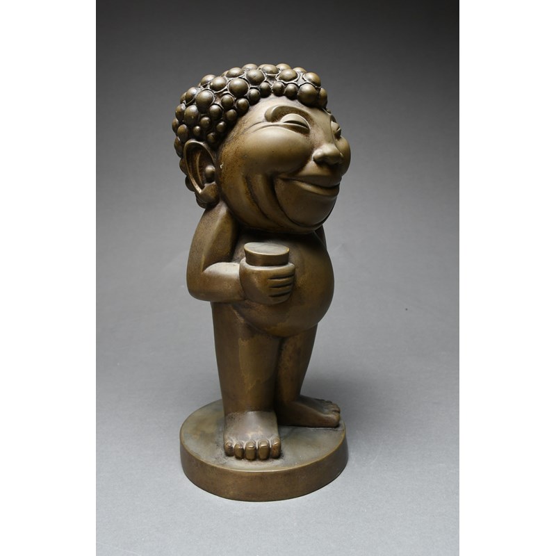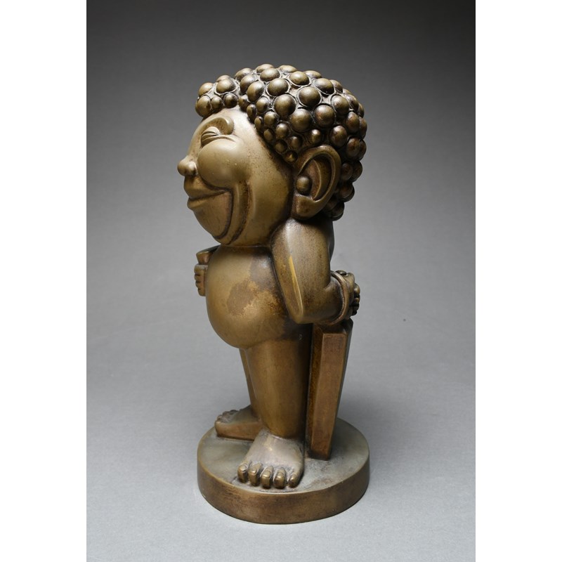 After the original in brass, sold in these rooms, 7 June 2023, lot 20. This was one of Kennington’s early sculptures, and provides an interesting counterpoint to the carved stone works that would come to dominate his oeuvre. During this period helived in Chiswick facingthe River Thames,and Bacchus was intended to serve as a table ornament on the barge owned by his friend the writer A. P. Herbert (1890-1971).