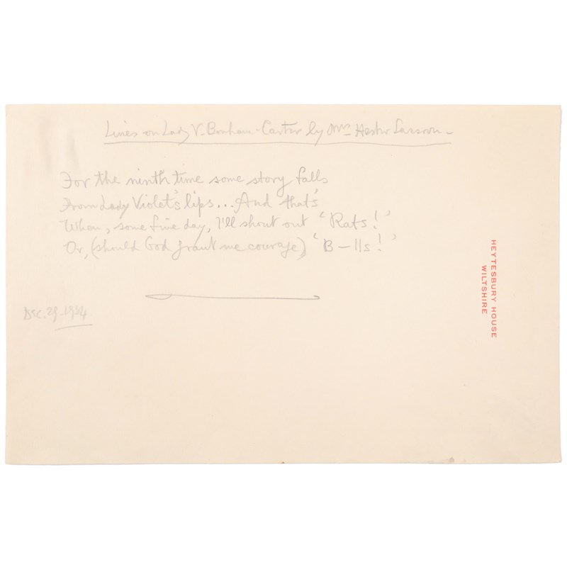 In pencil, probably by Siegfried Sassoon, on Heytesbury House headed writing paper