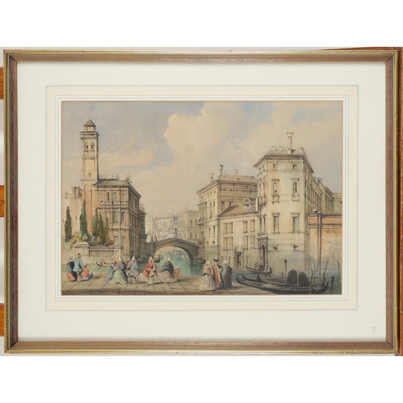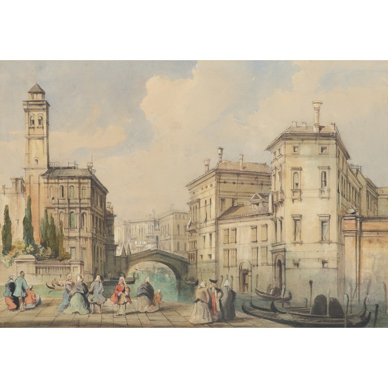 English School 19th Century A view of Venice with figures in eighteenth-century costume...