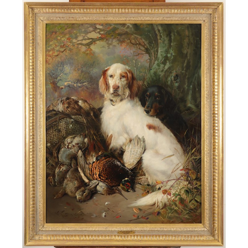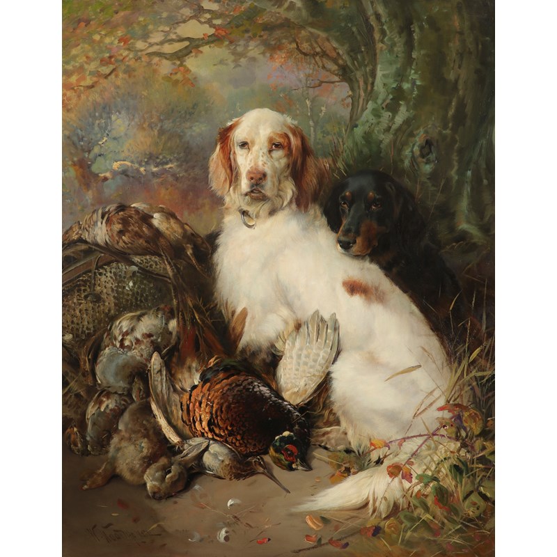 William Woodhouse (1857-1939) End of the day; an English and a Gordon setter with game Signed Oil...