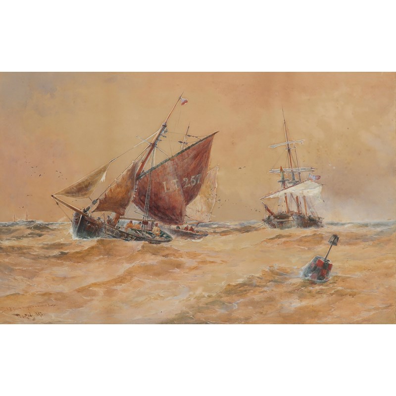 Lowestoft: Smacks Bringing in a Disabled Barque