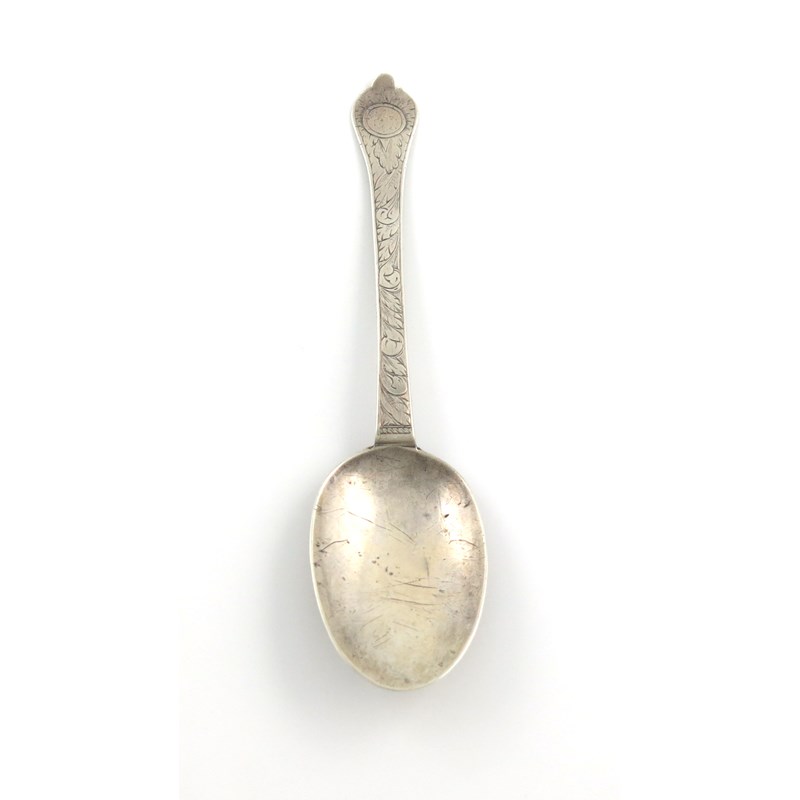 the oval bowl with a beaded rat-tail, the reverse of the terminal with scratch initials 'E.P' over 'T', length 17.5cm, approx. weight 0.9oz.