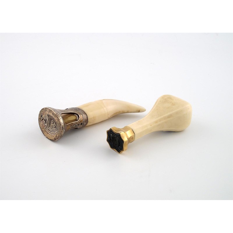 A silver mounted tooth desk seal,