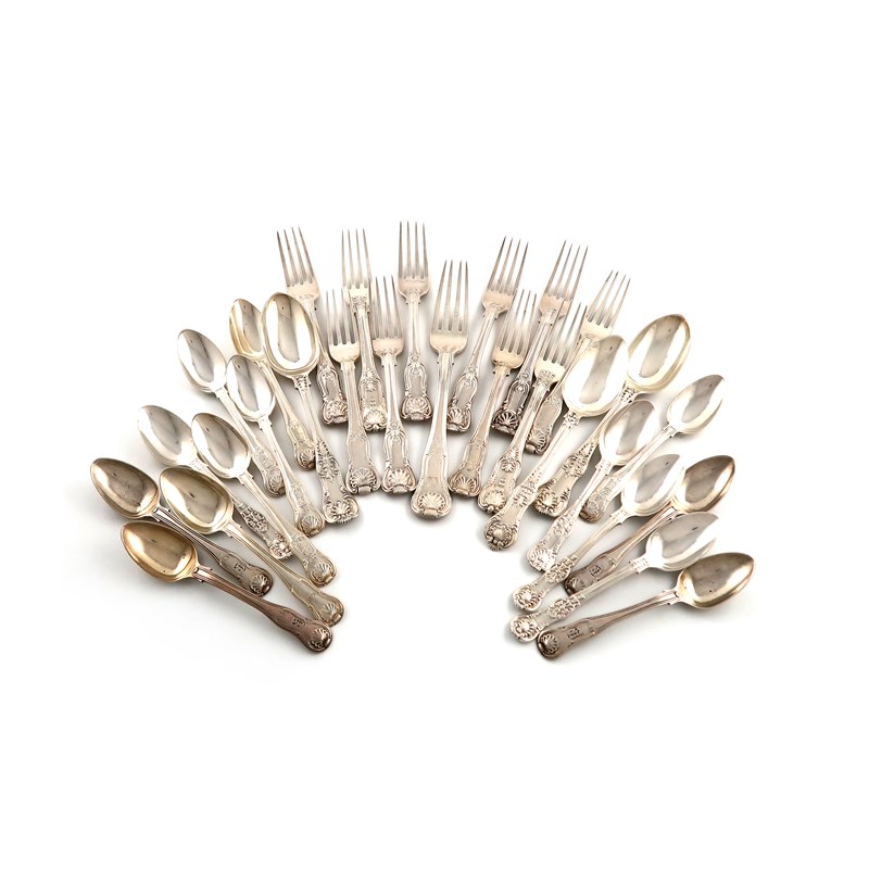 A collection of Georgian and Victorian silver Kings & Queens pattern flatware