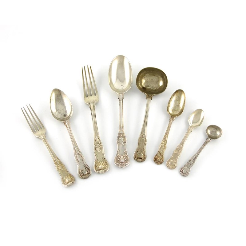 A collection of silver King's pattern, Queen's pattern and King's Hourglass pattern flatware,