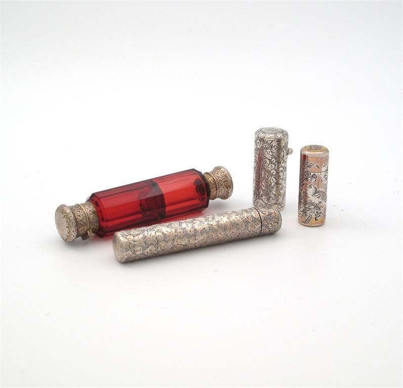 comprising: one double ended and of cylindrical form, one engraved with a bird, one double ended with a red glass body and one other. (4)