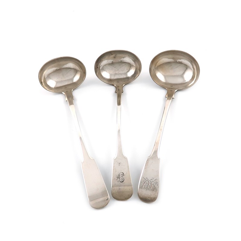Three 19th century Scottish provincial silver Fiddle pattern toddy ladles,