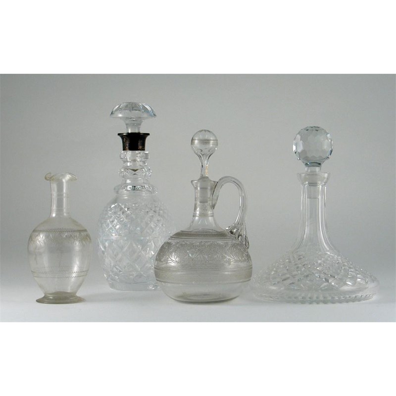 Glassware, comprising: five decanters and stoppers, a small carafe and a cut glass jug, 19th and 20th century. (12)