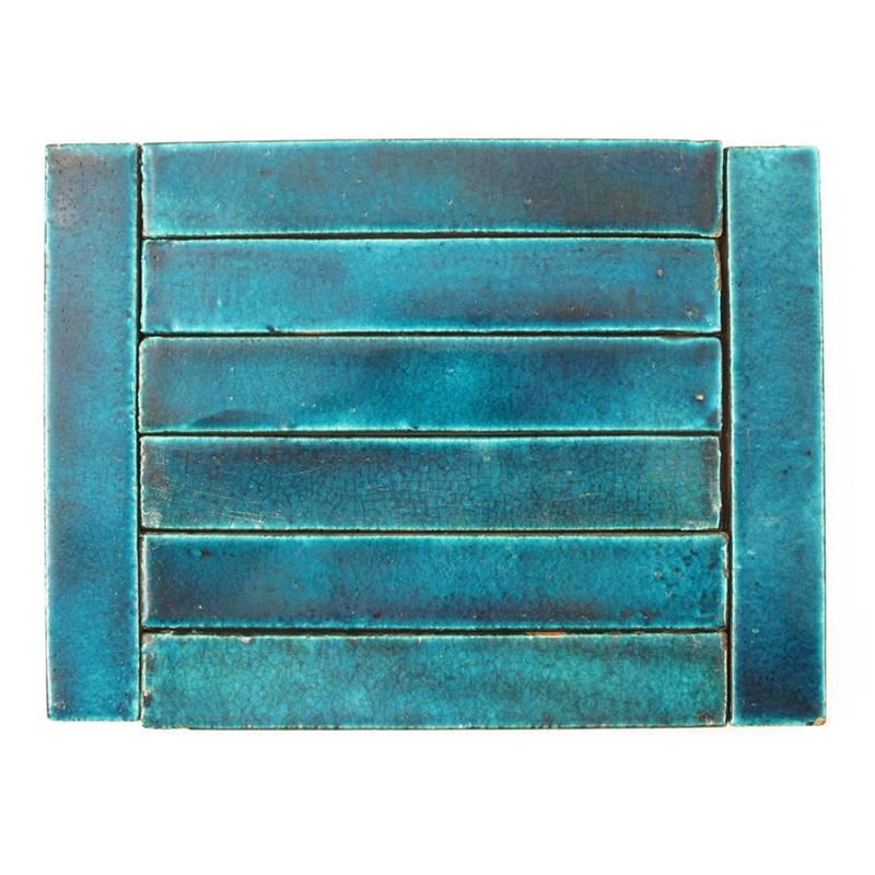 Eight William De Morgan spacer tiles, each glazed blue unsigned 15.5 x 2.5cm.