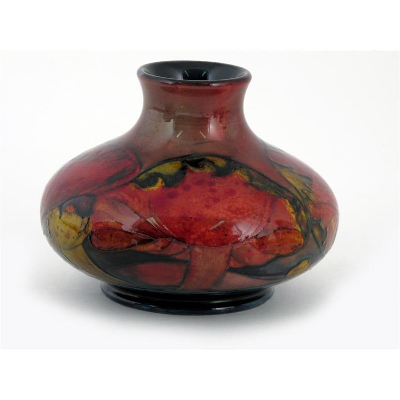 'Claremont' a Moorcroft Pottery flambe vase, designed by William Moorcroft, painted in colours under a rich flambe glaze impressed mark, painted blue signature 12cm. high