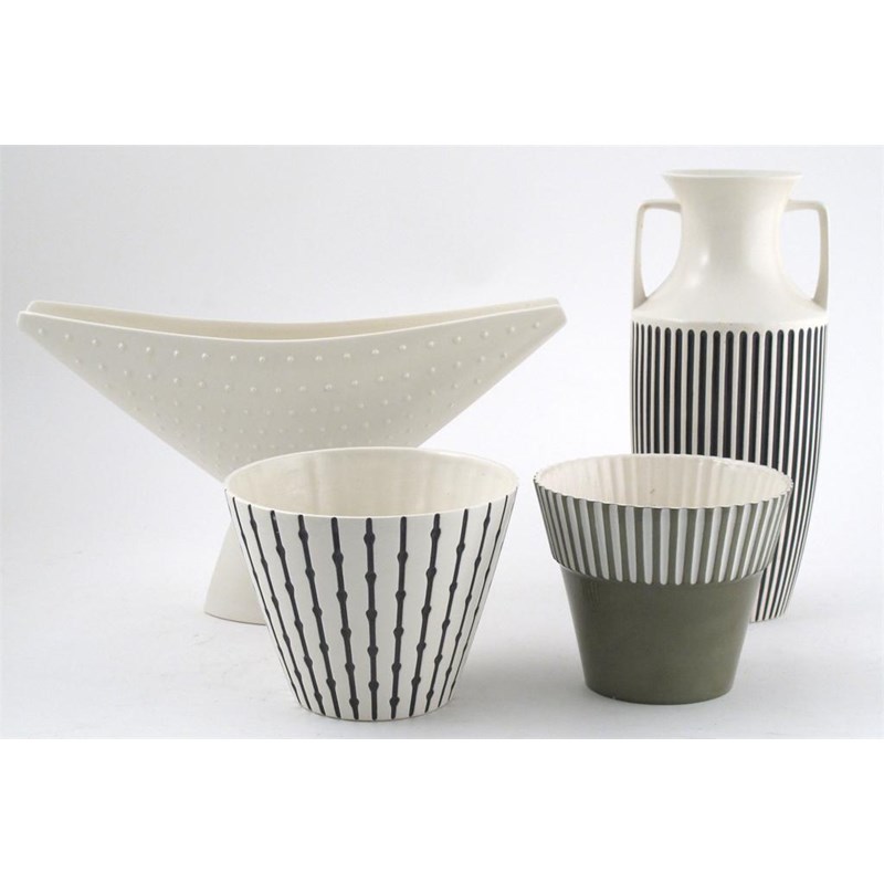 A Hornsea Pottery Studio Craft vase, designed by John Clappison, a Hornsea Pottery twin-handled vase, and two other Hornsea vases printed marks