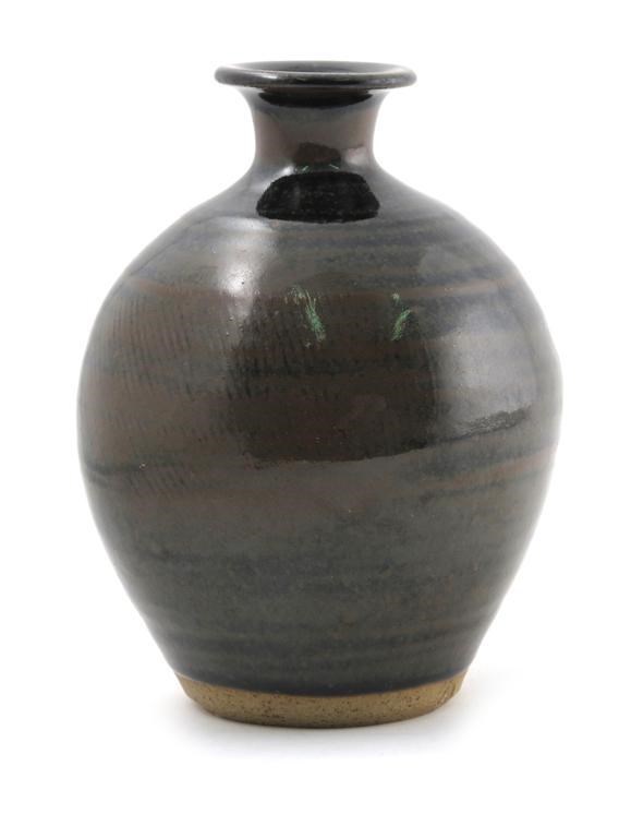 a shouldered stoneware vase, covered in a tenmoku glaze impressed A seal mark 19cm. high