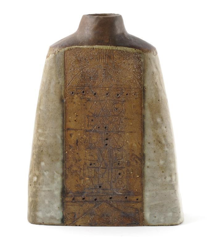 a stoneware shouldered vase, incised decoration unsigned 27cm. high