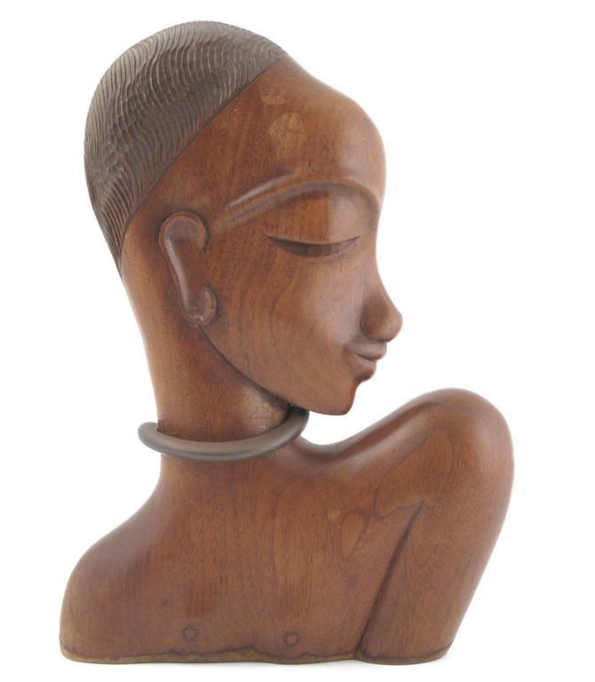 A carved wooden sculpture in the manner of Hagenauer, with applied metal ring necklace unsigned 32cm. high