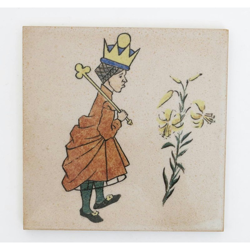 A Dunsmore Alice in Wonderland tile designed by C.F.A Voysey, printed in colours with the Queen, on a speckled off white ground impressed marks, for Wooliscroft blank 15cm. square