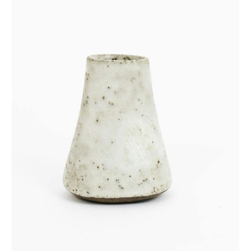 a stoneware vase, waisted cylindrical form, covered in a pitted white glaze impressed seal mark, 11.5cm. high