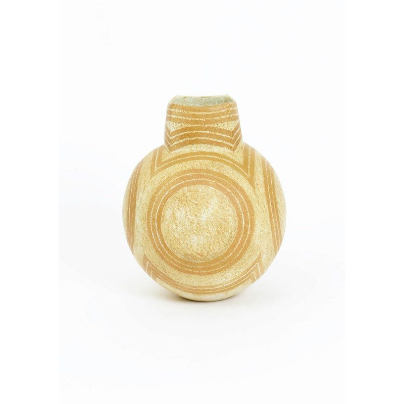 an ovoid vase with tapering square neck, buff with pale brown circle design impressed seal mark, 25.5cm. high