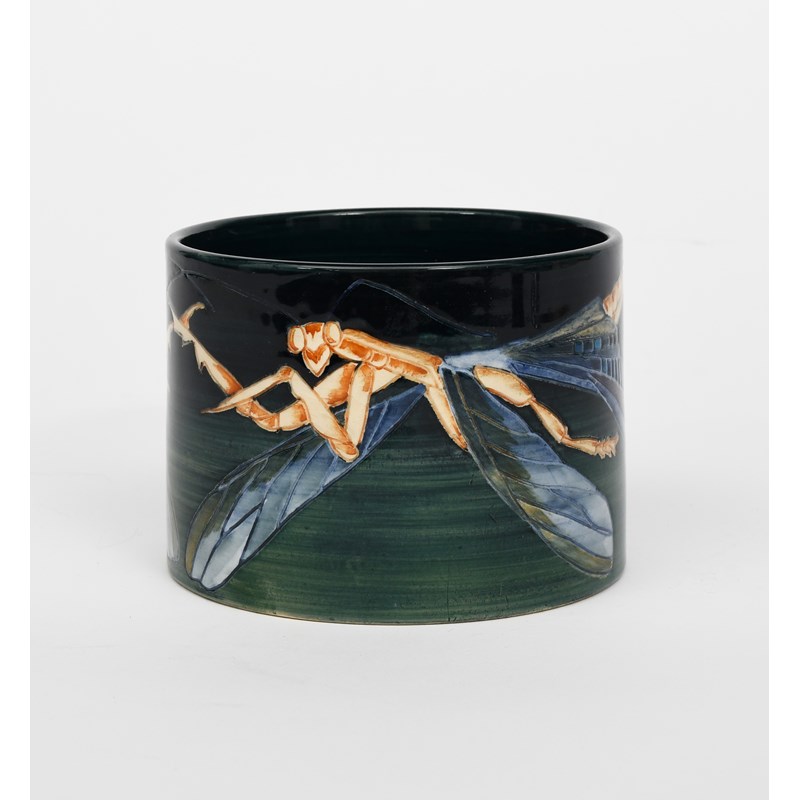 'Praying Mantis' a Dennis China Works cylindrical vase designed by Sally Dennis, dated 1998, painted