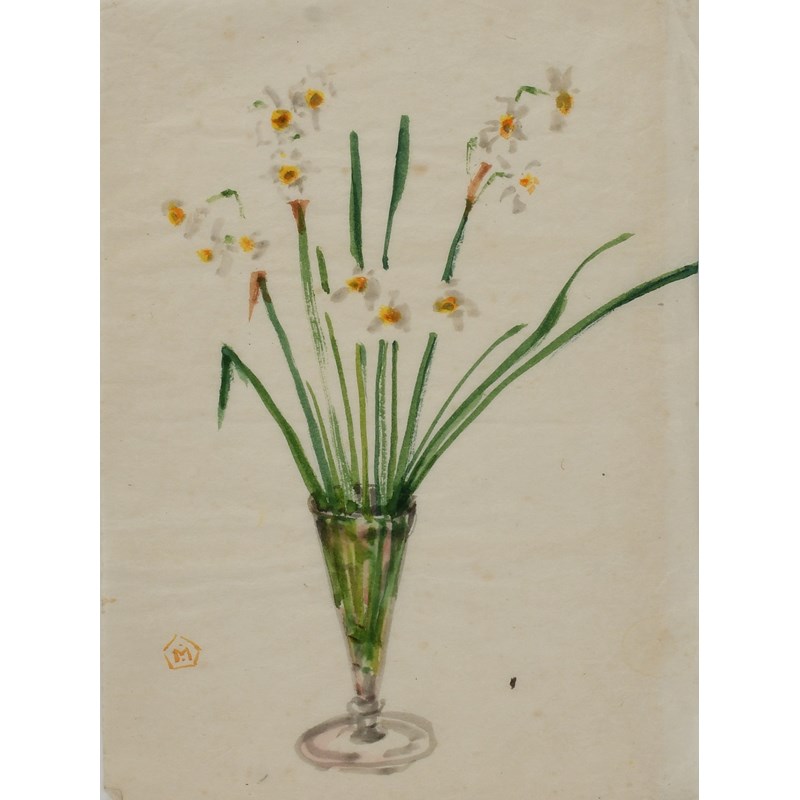 watercolour on rice paper, and Flowers in a vase a watercolour on rice paper possibly a William Staite Murray vase,