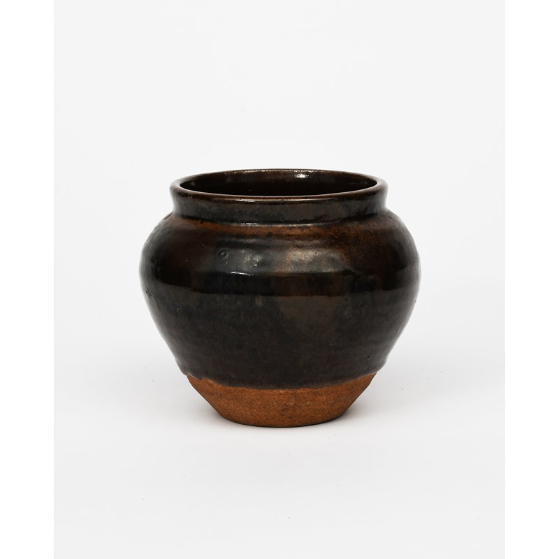 an early Rotherhithe stoneware vase, dated 1923, shouldered ovoid form, partially covered with a running tenmoku glaze,