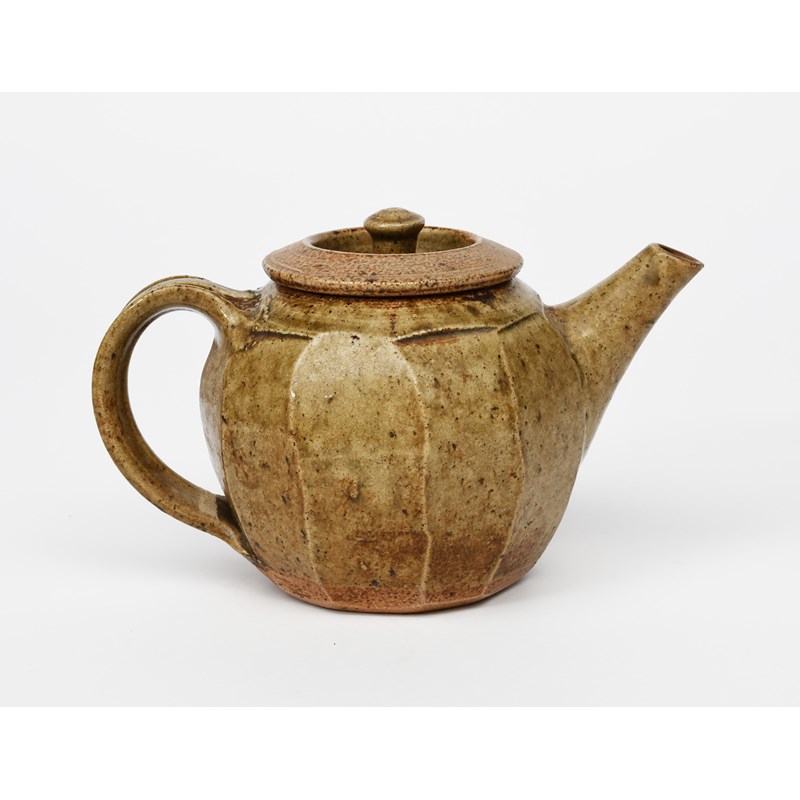 a cut-sided salt-glazed stoneware small teapot and cover, with river slip,