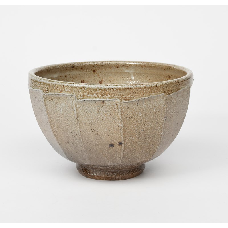 a large salt-glazed stoneware cut-sided bowl,