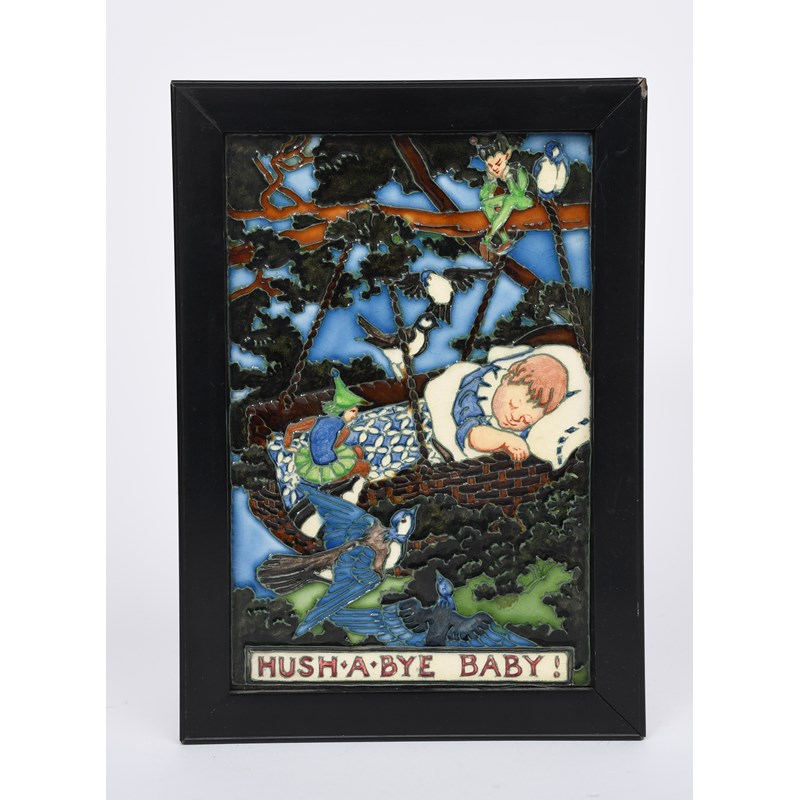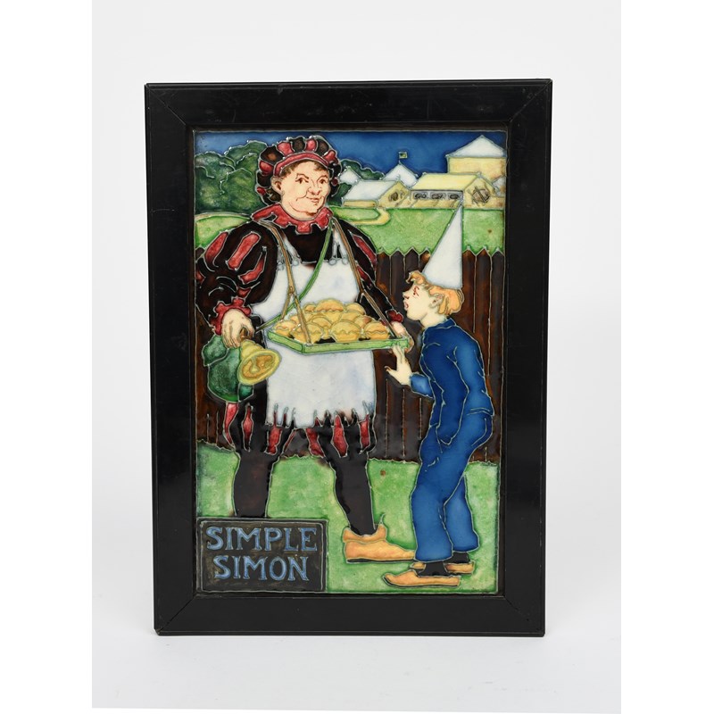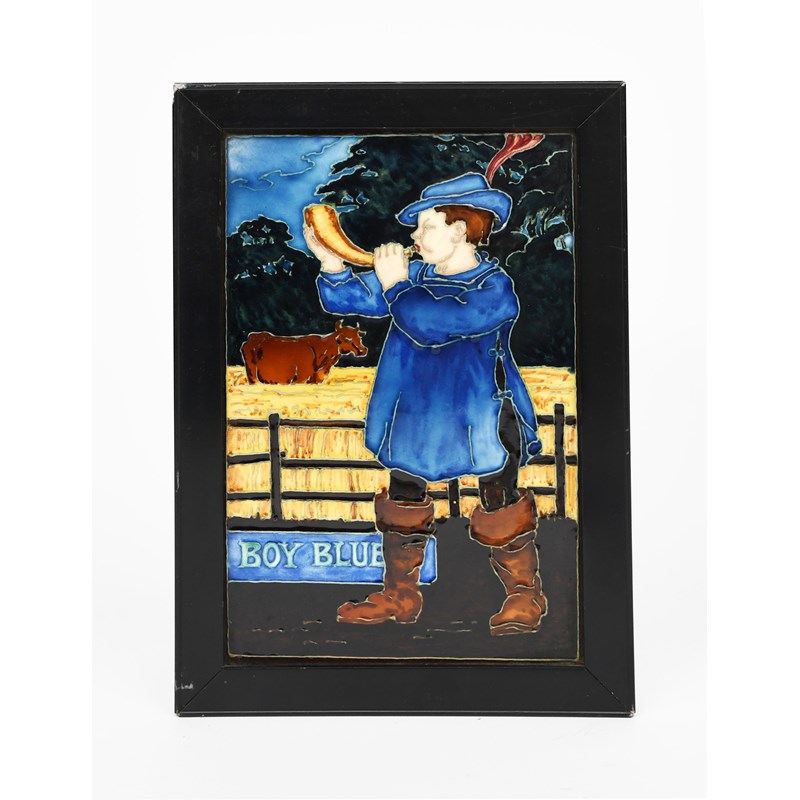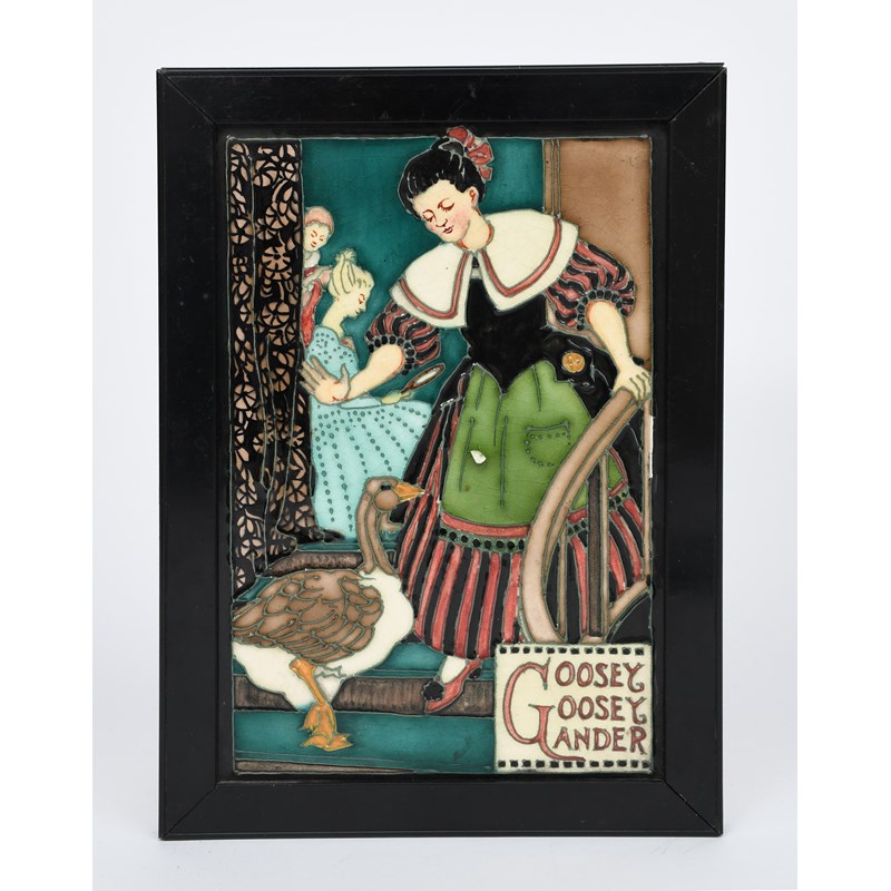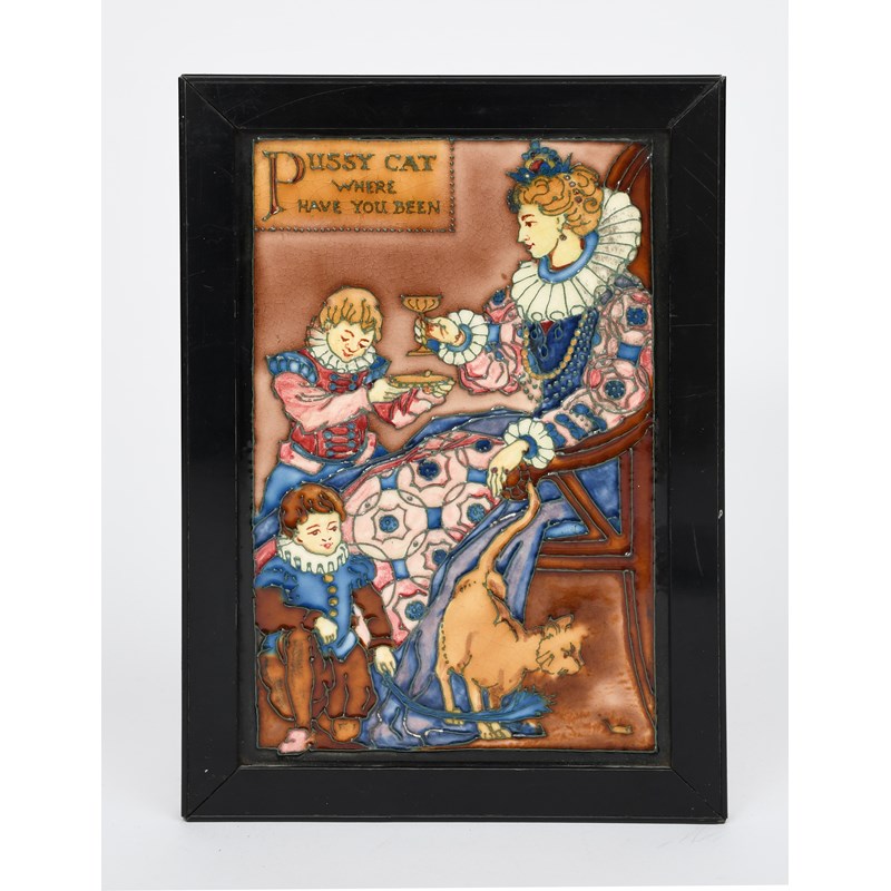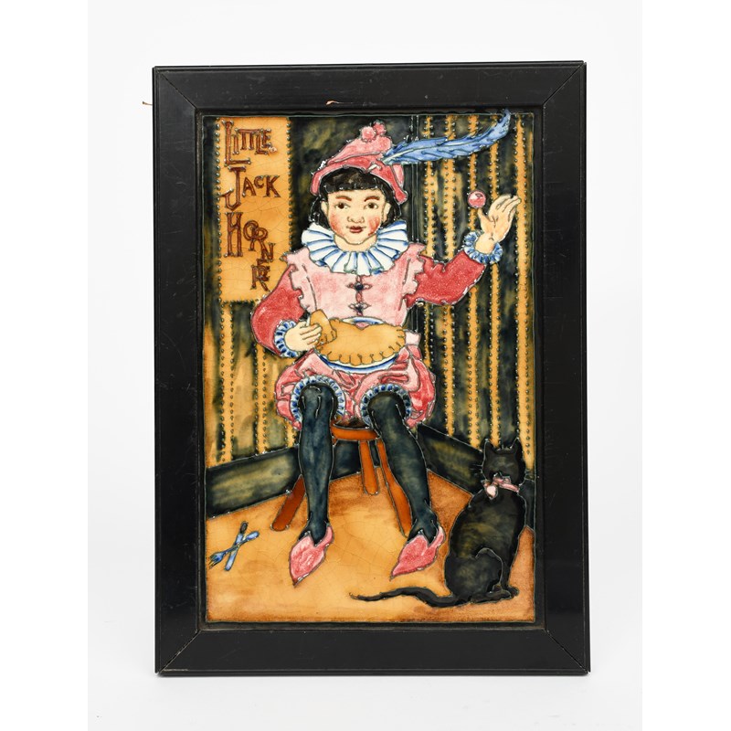 A rare and probably unique set of ten Pilkington's Lancastrian Nursery Rhyme tiles by Margaret Pilkington, designed in 1917, each rectangular and tubeline decorated in colours, in ebonised wood frames, comprising;
