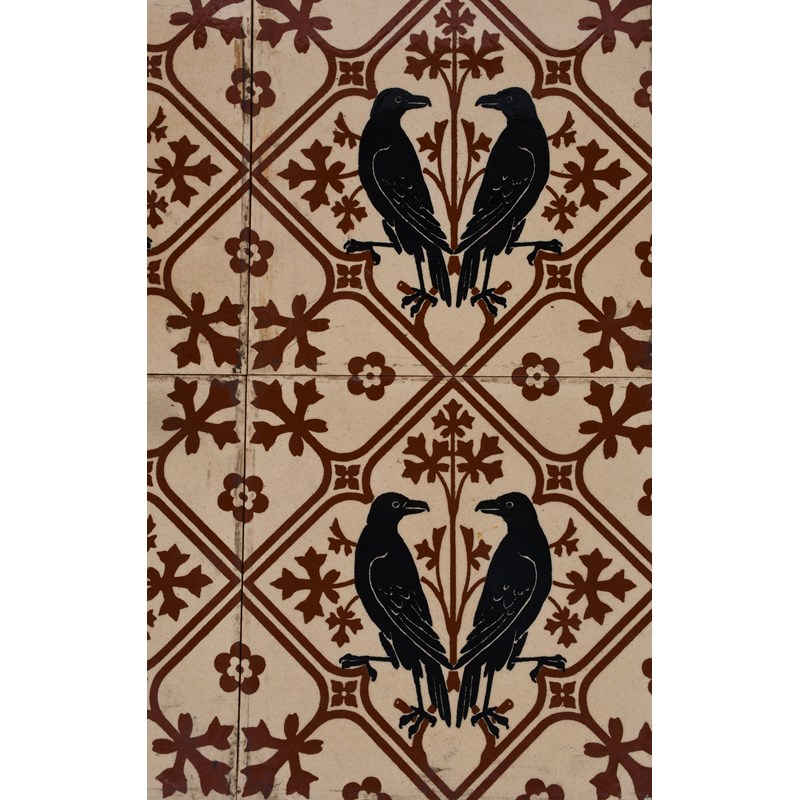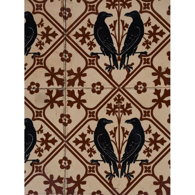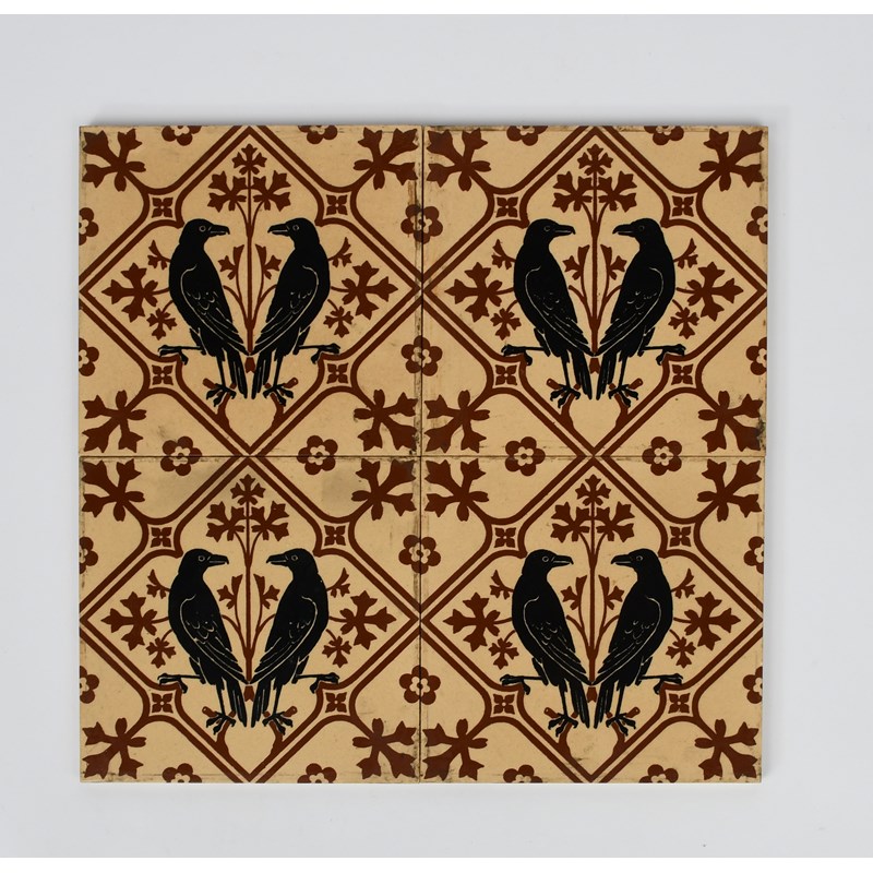 Four large Minton's China Works tiles designed by AWN Pugin, each printed with facing black birds on