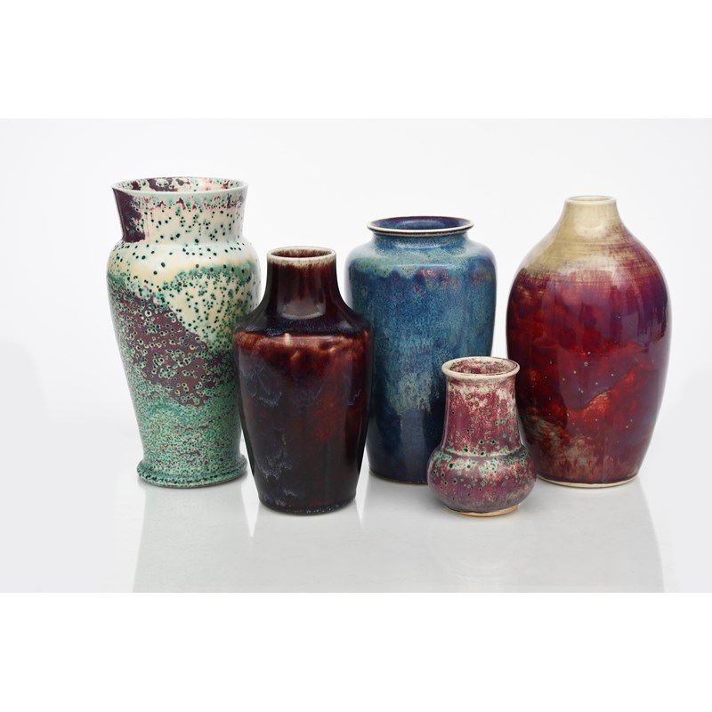 A Ruskin Pottery High-fired stoneware vase by William Howson-Taylor, shouldered, flaring cylindrical