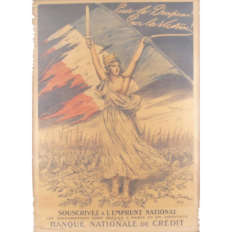 ' a poster by Georges Bertin Scott, dated 1917, lithograph in colours printed by Devambez, Paris, framed signed in the print, losses 116 x 79cm.