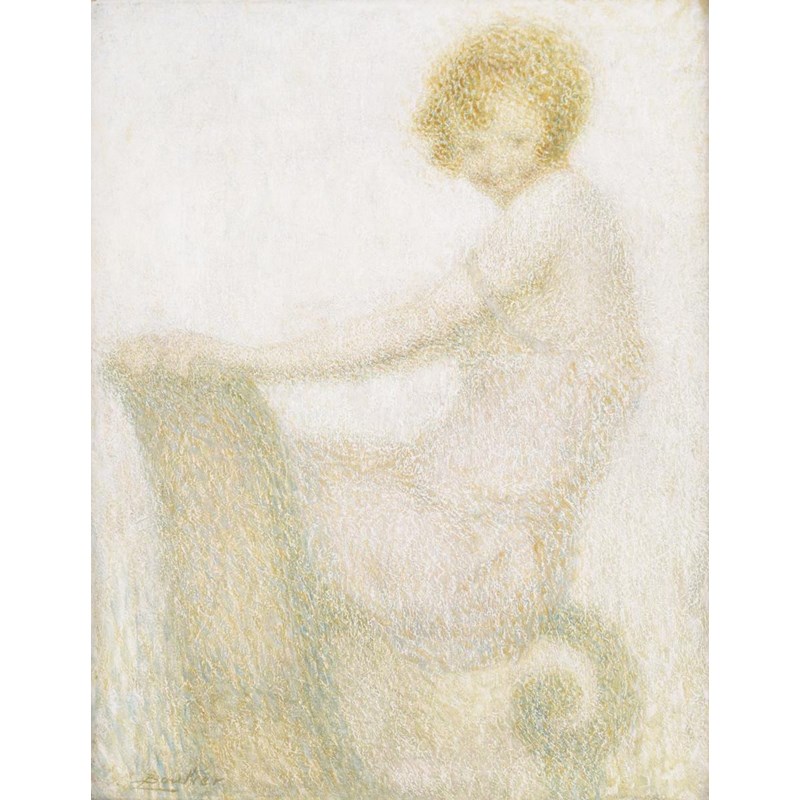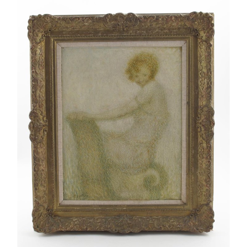 'Seated Nude' an oil on board by Bouvier, in carved wood frame signed lower left image 40 x 31cm.