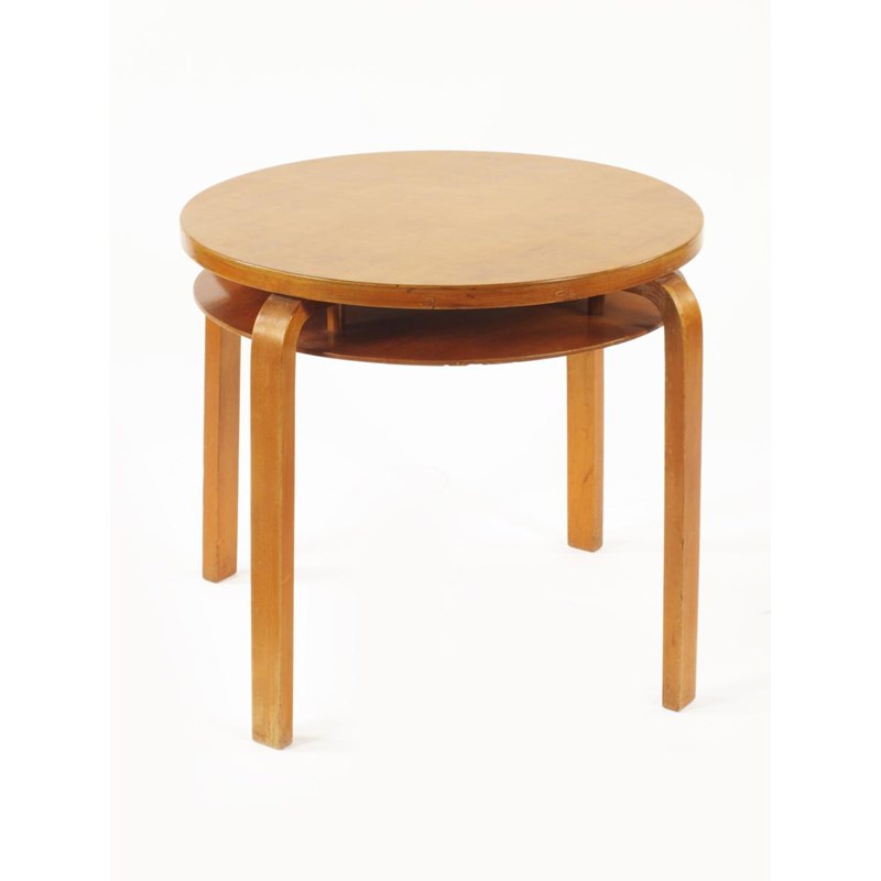 A Finmar table, the circular top with similar circular shelf, on four bentwood legs applied label 63cm diam, 56.5cm. high