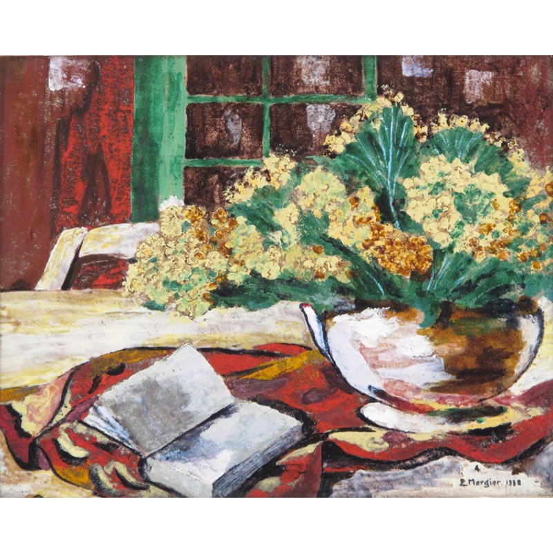 An enamel on copper plaque by Paul-Louis Mergier, dated 1938, framed signed and dated in the enamel 40 x 32.5cm.