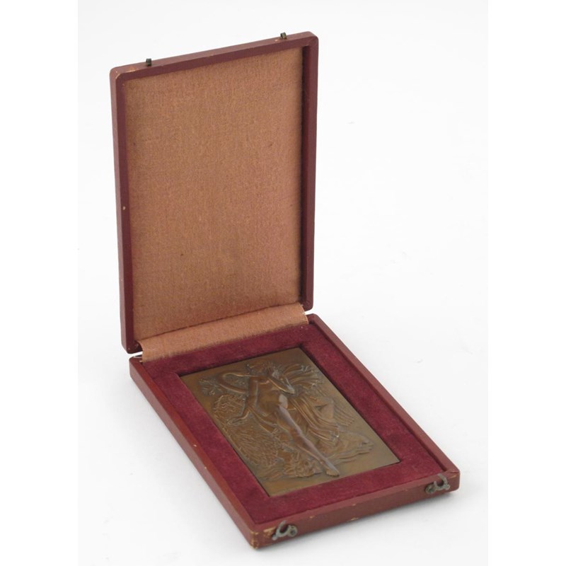 Leda and the Swan a bronze plaque in fitted case cast from a model by Ray Pelletier10.3 x 6.3cm.