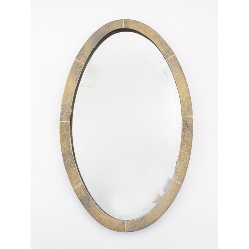 λ A shagreen wall mirror, oval on wooden frame unsigned 65cm. wide
