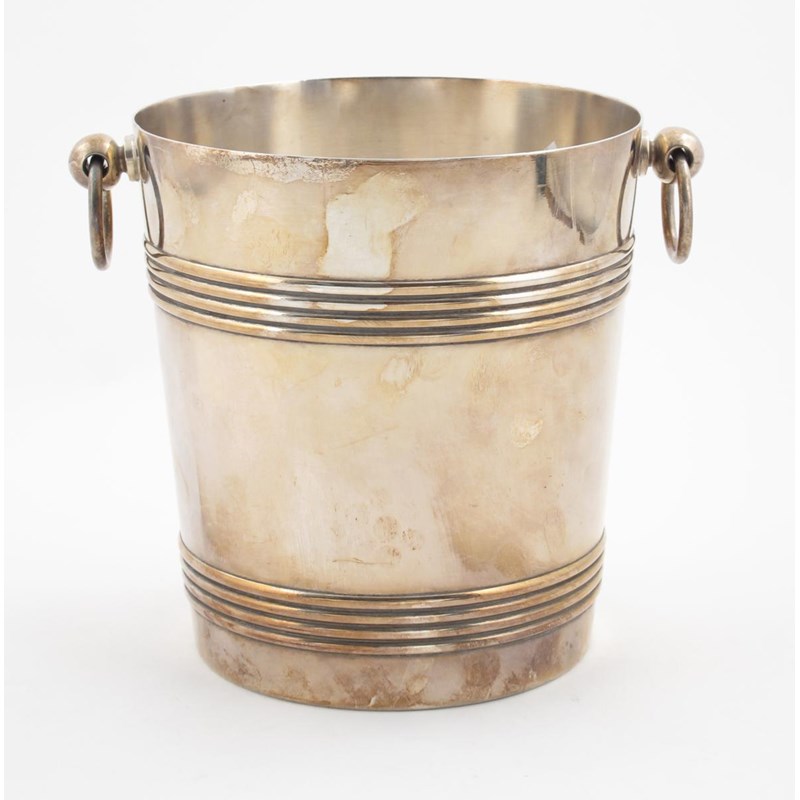 A Christofle electroplated metal ice bucket, flaring cylindrical form with loop handles, stamped mark, 20.5cm. high