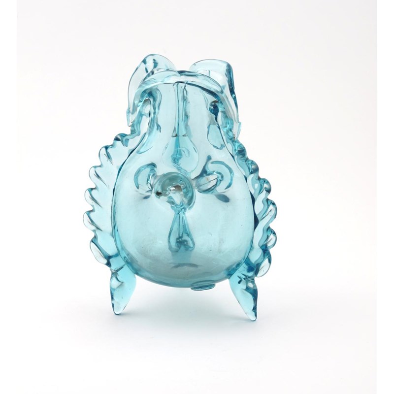 An Art Nouveau Auguste Jean glass vase, the blown pale blue glass with applied column decoration and impressed decoration, on tripod foot impressed seal mark, 26cm. high